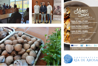 «La almeja hecha arte» es la última iniciativa de la Cooperativa Ría de Arosa para promocionar sus productos del mar con certificación pescadeRías de onde se non? entre los profesionales de la restauración. Tres jornadas que se llevaron a cabo en el Mercado de Abastos de Santiago, en el restaurante O Curro da Parra y en el Aula de Cocina del Vivero de Empresas de Boiro, con Miguel Mosteiro, de Gastrolab Arousa.