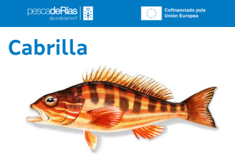 La cabrilla (Serranus cabrilla) es una especie capturada por la flota artesanal gallega con artes de enmalle y anzuelo, que se comercializa en fresco. Habita fondos rocosos y destaca por su color rosado con bandas transversales castañas.
