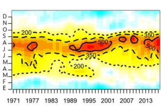 En el artículo de este mes, los investigadores Xosé Antón Álvarez-Salgado, Isabel Fuentes Santos y Silvia Piedracoba Varela analizan la evolución temporal de las variables que influyen en la explotación de los recursos marinos de las rías gallegas: el régimen de vientos predominantes, la temperatura superficial del agua costera, la salinidad, la variación del nivel medio del mar y la acidificación oceánica.