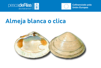 Reconocible por su concha blanca de forma oval tendente a triangular, la almeja blanca o clica (Spisula solida) se captura principalmente mediante marisqueo a flote con raño y suele aparecer asociada a la almeja babosa y a la rubia. En determinadas zonas también puede recogerse a pie con ganchas.