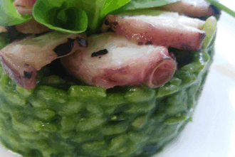 A receita do mes: Arroz verde cremoso de raia con polbo e boletus