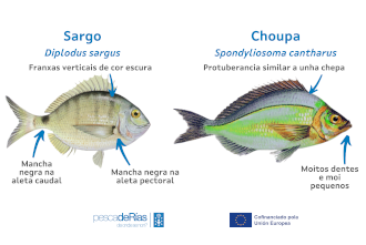 Algunhas especies presentan características físicas similares e resultan difíciles de distinguir no punto de venda. Isto non nos debe sorprender, pois é habitual que a clasificación taxonómica das especies vaia cambiando no tempo conforme avanza o coñecemento científico. Hoxe poñemos o foco en dúas especies de peixes que poden levar a confusión: o sargo común (Diplodus sargus) e a choupa (Spondylioma cantharus).
